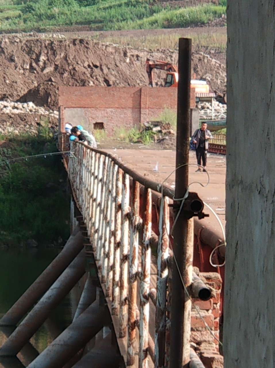 平桥金科外面,爱好钓鱼的在这个钢架桥上钓鱼。从这根只有一个扣件的钢管上上下下,太危险了。休闲垂钓是小事,自身安全最重要。